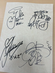 (あおい役:井口裕香さん ひなた役:阿澄佳奈さん かえで役:日笠陽子さん ここな役:小倉唯さん) の直筆サイン入り、第1話、2話の台本です!