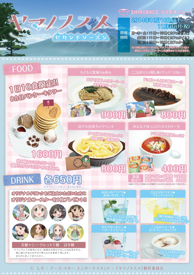 【TVアニメ「ヤマノススメ」第2期の放送記念コラボレーション】実施! - 2014/10/17